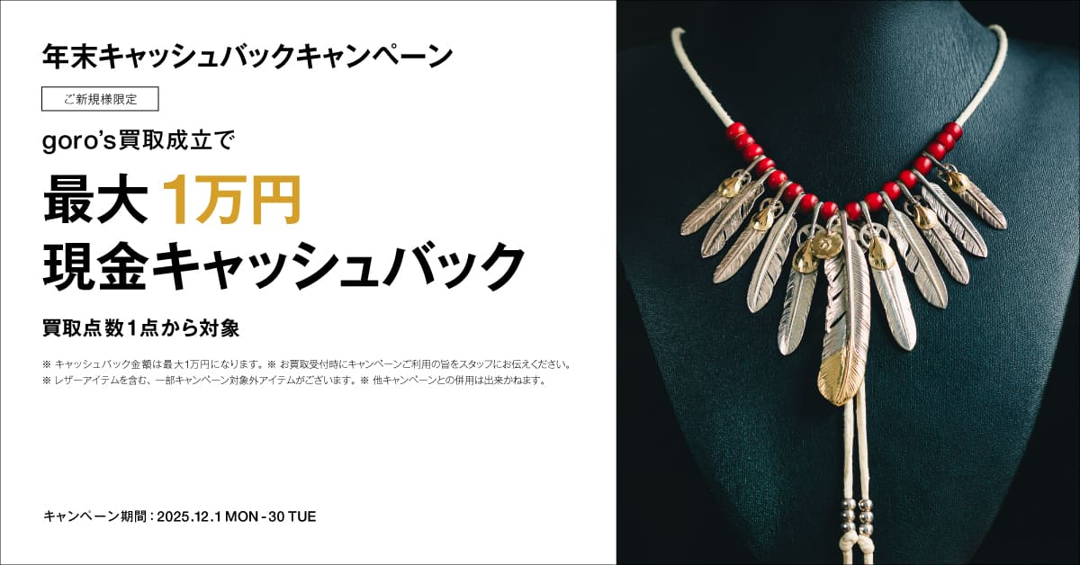 初めての方限定、ゴローズのお買取(レザーアイテム、特別買取アイテム除く)で、1万円のキャッシュバック!