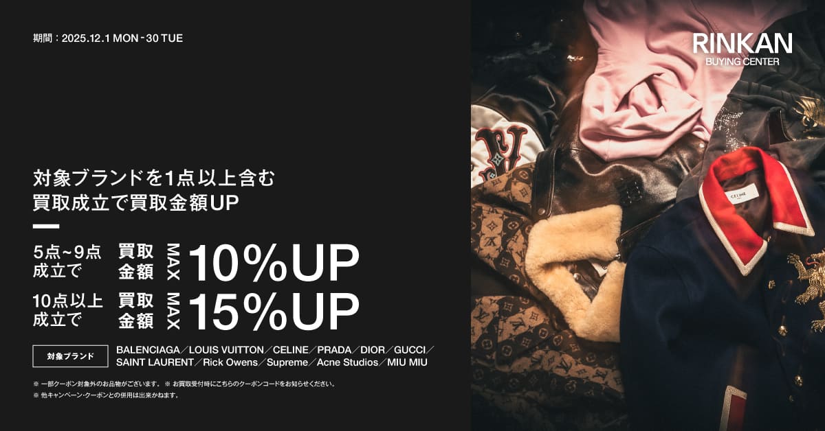 RINKAN買取センターの公式LINE【@rinkan】を友だち追加して対象ブランドを含む買取成約で、点数に応じて買取金額がMAX15%UP!