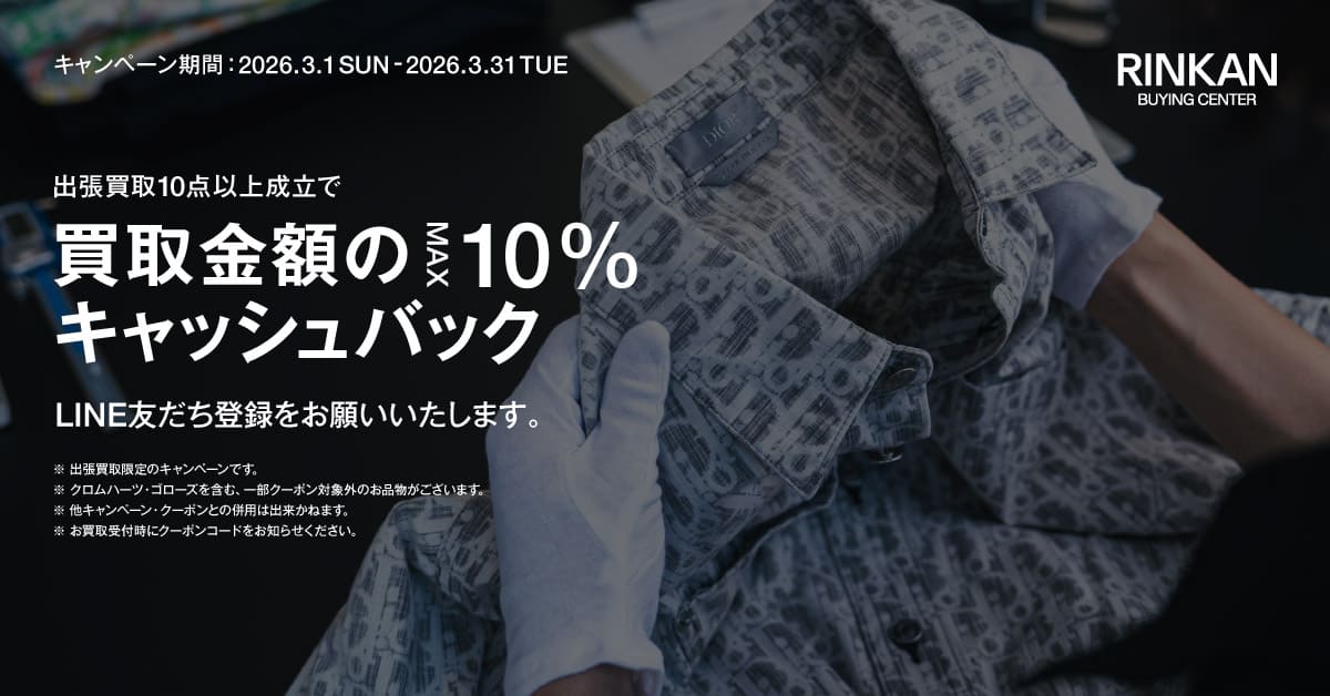 RINKAN買取センターの公式LINE【@rinkan】を友だち追加、出張買取10点以上成約で、買取金額のMAX10%をさらにキャッシュバック!
